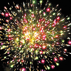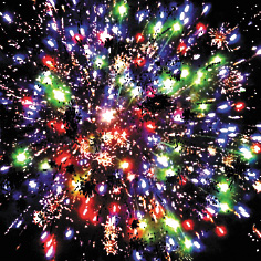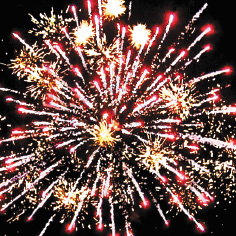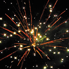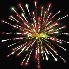 3. Красные звезды с пышными хвостами (кокос) и облако золотого треска (трещащий дождь).