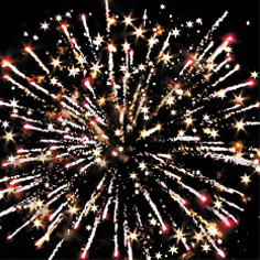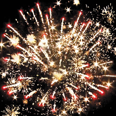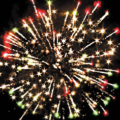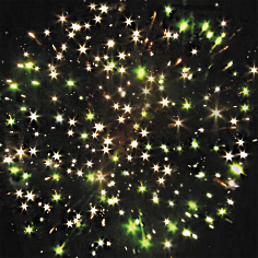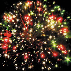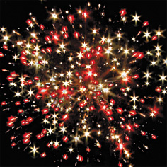 8. Красно-зеленые звезды с пышными хвостами (кокос) и треск.