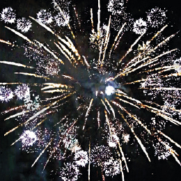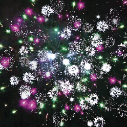 6. Красочная концовка: Множество серебряных ниспадающих нитей (парча) и облако треска (трещащий дождь).