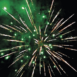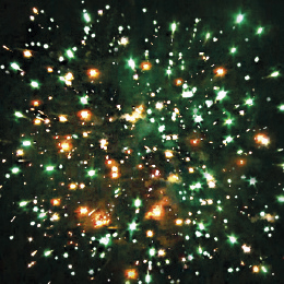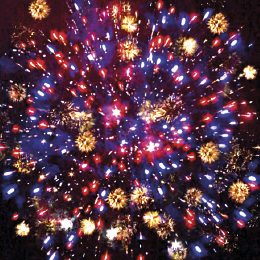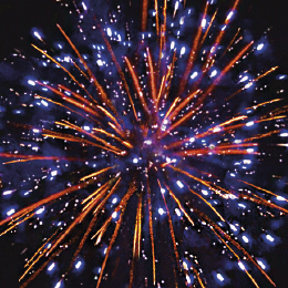 3. Красно-синяя сфера (пион) и облако золотого треска (трещащий дождь).
