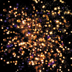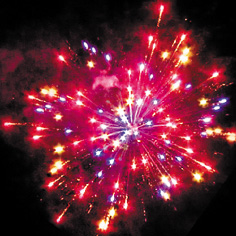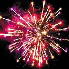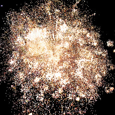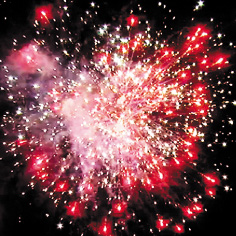 1. Красные, фиолетовые, желтые звезды с пышными хвостами (кокос) и облако трещащих разрывов (трещащий дождь).
