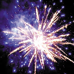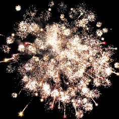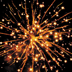 10. Синяя сфера (пион), серебряные звезды с пышными трещащими хвостами (трещащий кокос) и облако трещащих разрывов (трещащая хризантема).