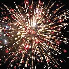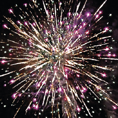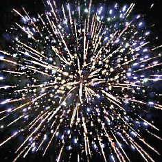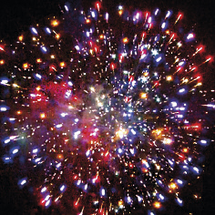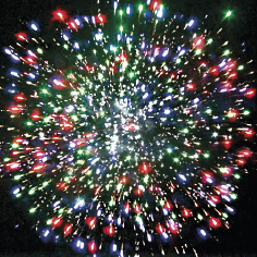 6. Красочная концовка. ЗАЛП: Множество серебряных ниспадающих нитей (парча), красные звезды и треск.