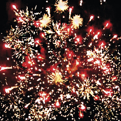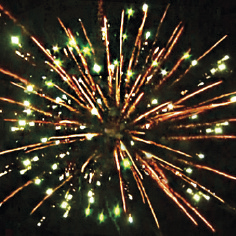 4. Синяя сфера (пион) и облако треска (трещащая хризантема).