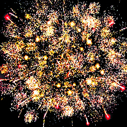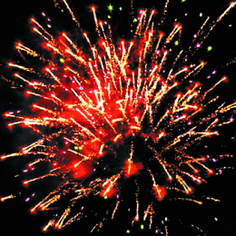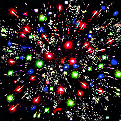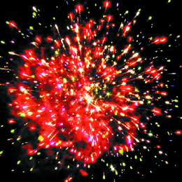 1. Красно-зеленые звезды с пышными хвостами (кокос) и облако трещащих разрывов (трещащий дождь)