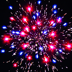 6. ЗАЛП: Серебряные звезды с пышными хвостами (кокос) и красно-синие звезды.