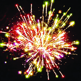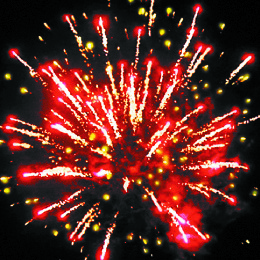 1. Красные звезды с пышными хвостами (кокос) и облако треска (трещащий дождь).
