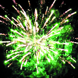 3. Зеленые звезды с пышными хвостами (кокос) и облако треска (трещащий дождь).