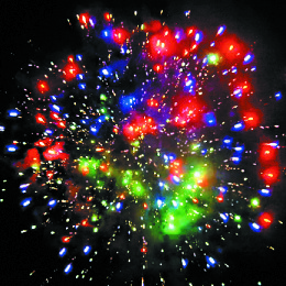 1. Красно-зелено-сине-белая мерцающая сфера (пион).