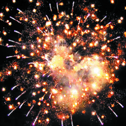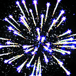 3. Фиолетовые звезды с пышными хвостами (кокос) и облако треска (трещащая хризантема).