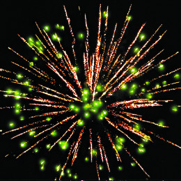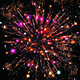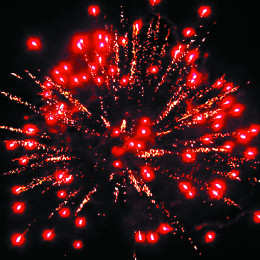 1. Красная сфера (пион) и облако трещащих разрывов (трещащая хризантема).