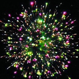 3. Фиолетово-желтая сфера (пион) и облако трещащих разрывов (трещащая хризантема).