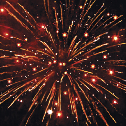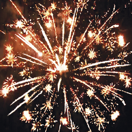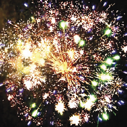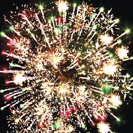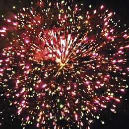 5. Красно-зеленые звезды с пышными хвостами (кокос) и облако треска (трещащий дождь).