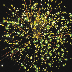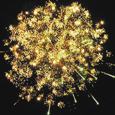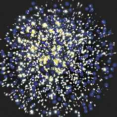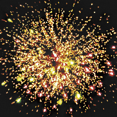 4. Зелено-фиолетовая сфера (пион) и облако треска (трещащая хризантема).
